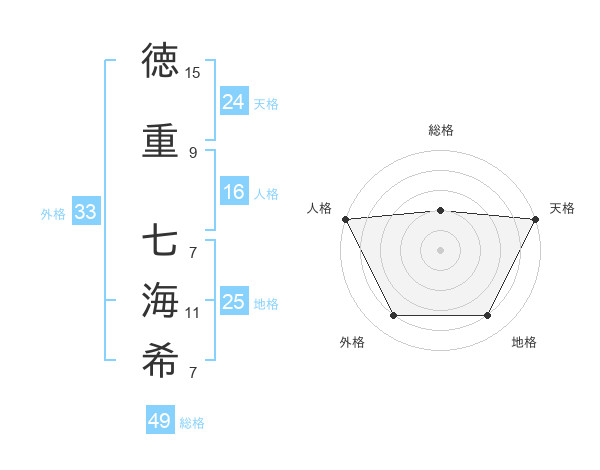 徳重 七海希さんを姓名の画数から五運を鑑定