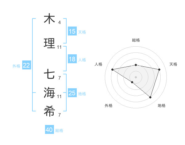 本サイトの鑑定結果の正当性は保証しません。鑑定結果は参考程度にお読みください。実際の名づけにご利用される場合は、姓名判断についてご自身でよくお調べください。