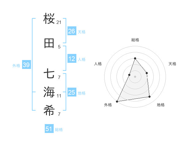 桜田 七海希さんを姓名の画数から五運を鑑定