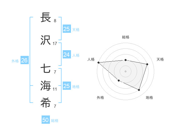 長沢 七海希さんの総格は50画の2点!