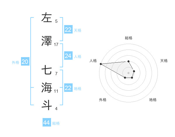 左澤 七海斗さんを姓名の画数から五運を鑑定
