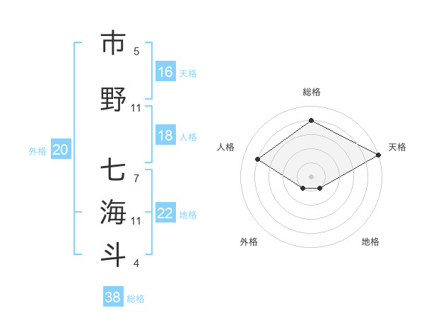 市野 七海斗さんの総格は38画の4点!