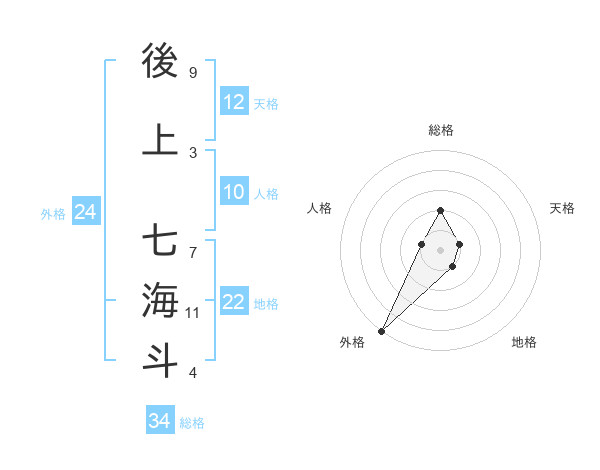 後上 七海斗さんの総格は34画の2点!