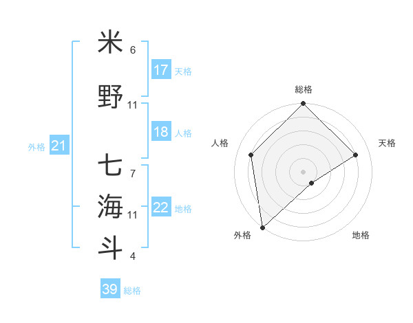 米野 七海斗さんを姓名の画数から五運を鑑定