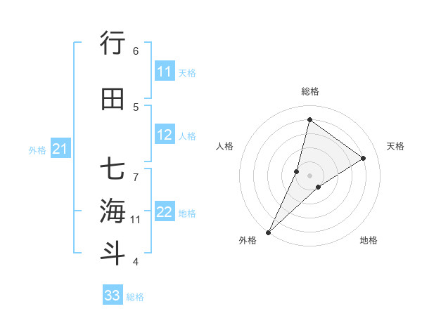 行田 七海斗さんを姓名の画数から五運を鑑定