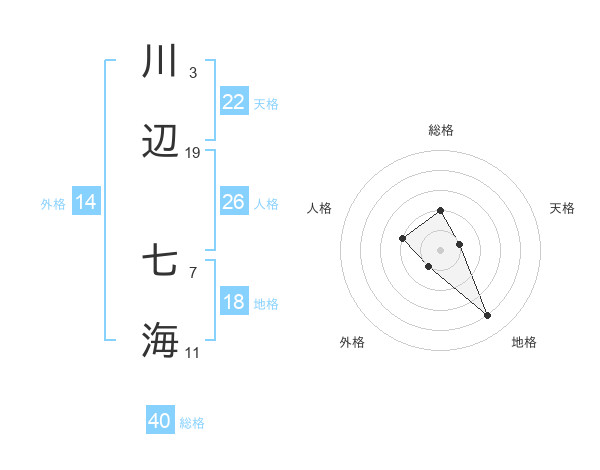 本サイトの鑑定結果の正当性は保証しません。鑑定結果は参考程度にお読みください。実際の名づけにご利用される場合は、姓名判断についてご自身でよくお調べください。