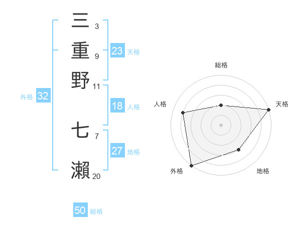 三重野 七瀨さんを姓名の画数から五運を鑑定