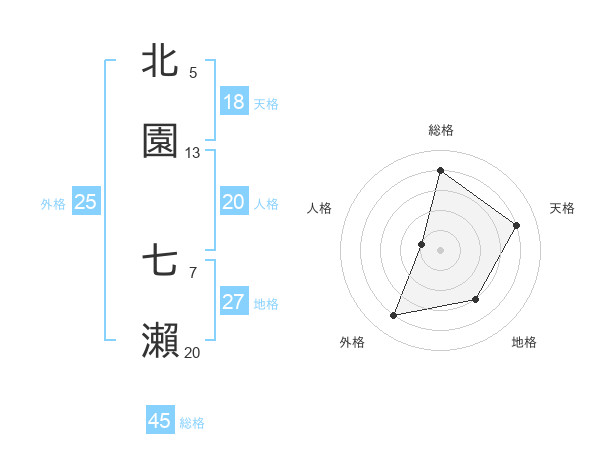 北園 七瀨さんの総格は45画の4点!