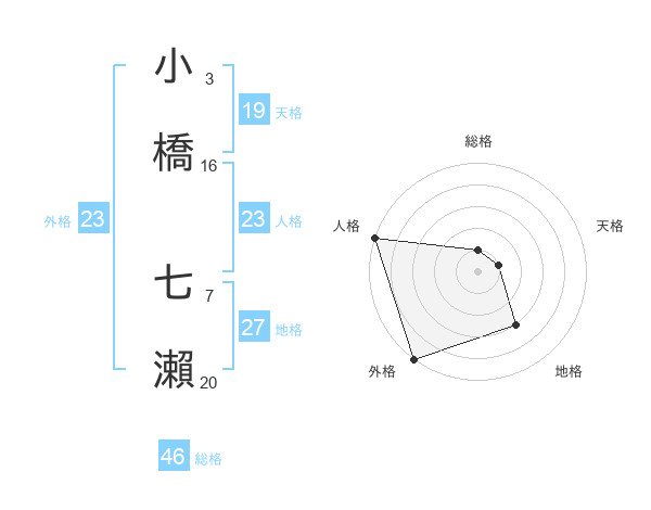 小橋 七瀨さんを姓名の画数から五運を鑑定