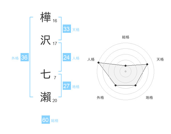 樺沢 七瀨さんを姓名の画数から五運を鑑定