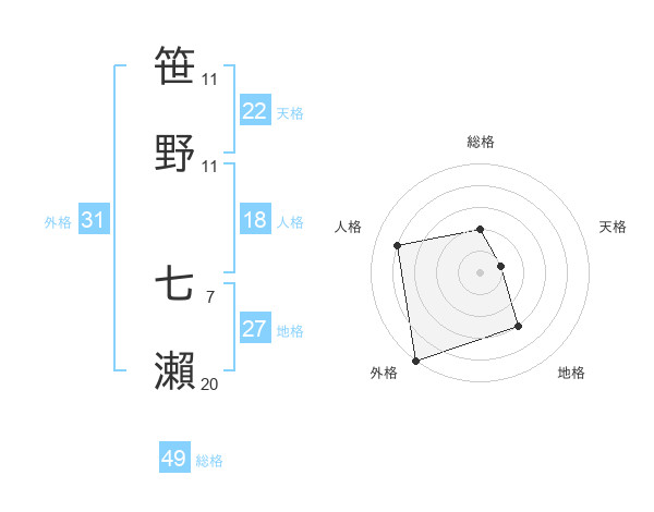 笹野 七瀨さんを姓名の画数から五運を鑑定
