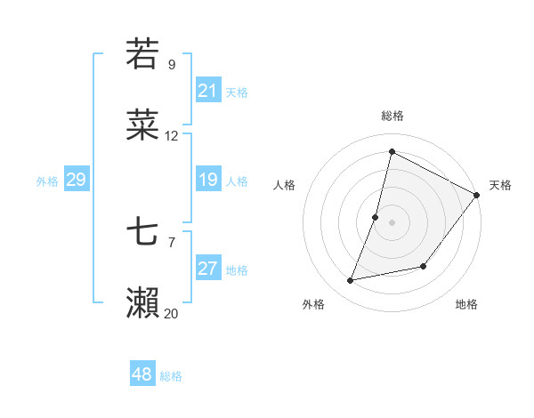 若菜 七瀨さんの天格は21画の5点!