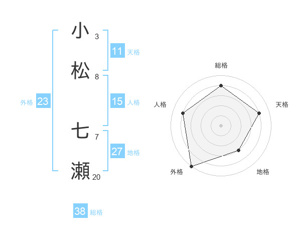 小松 七瀬さんの総格は38画の4点!