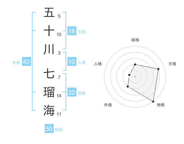 五十川 七瑠海さんの天格は18画の4点!