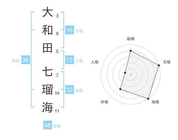 大和田 七瑠海さんを姓名の画数から五運を鑑定