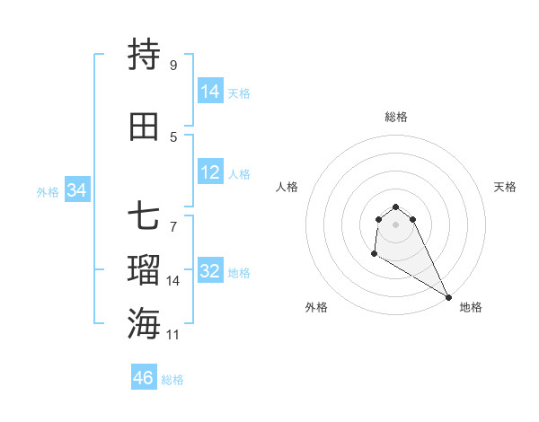持田 七瑠海さんの天格は14画の1点!