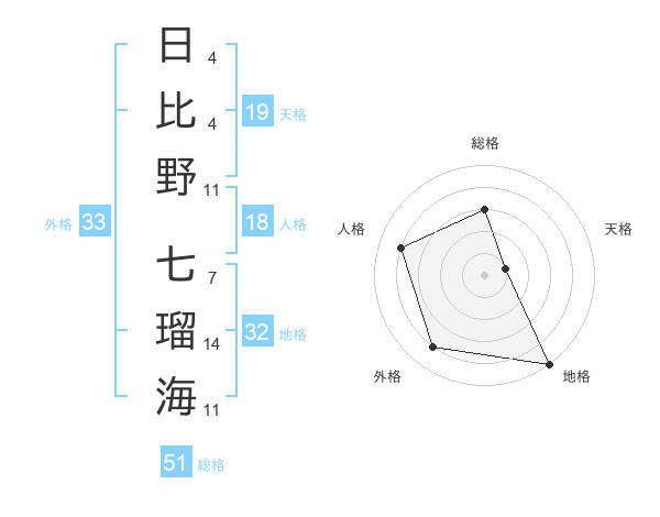 日比野 七瑠海さんを姓名の画数から五運を鑑定