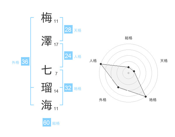 梅澤 七瑠海さんの地格は32画の5点!
