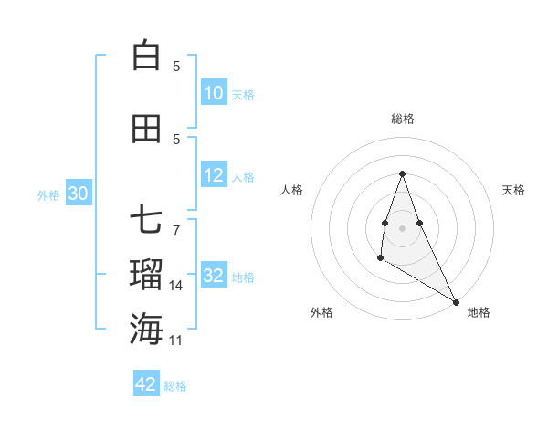 白田 七瑠海さんを姓名の画数から五運を鑑定