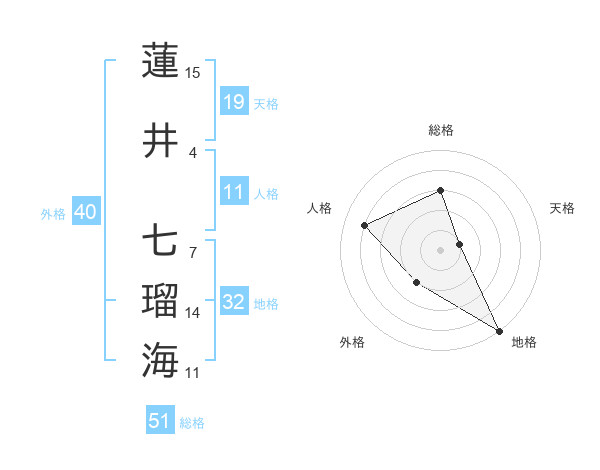 蓮井 七瑠海さんの総格は51画の3点!