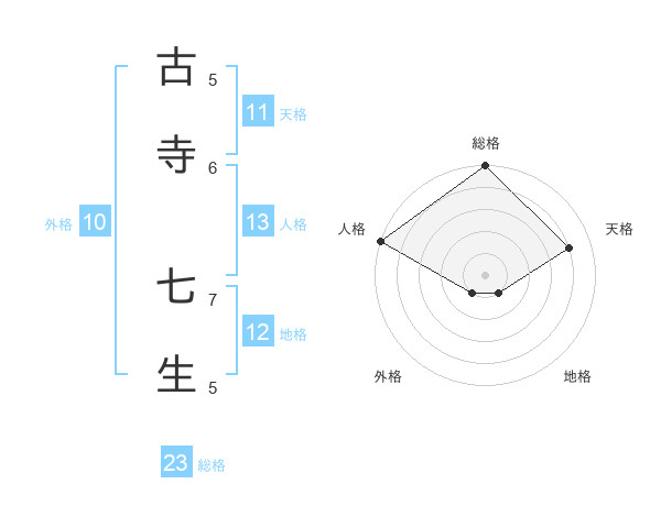 本サイトの鑑定結果の正当性は保証しません。鑑定結果は参考程度にお読みください。実際の名づけにご利用される場合は、姓名判断についてご自身でよくお調べください。