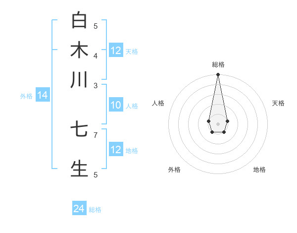 白木川 七生さんの総格は24画の5点!
