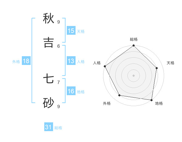 秋吉 七砂さんの総格は31画の5点!