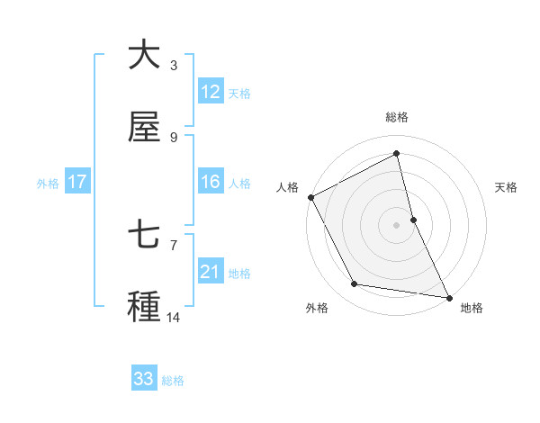 大屋 七種さんの外格は17画の4点!