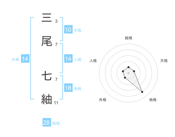 三尾 七紬さんを姓名の画数から五運を鑑定