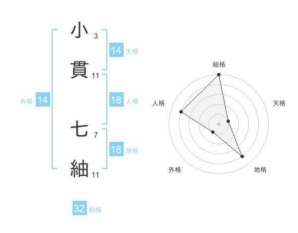 小貫 七紬さんの総格は32画の5点!