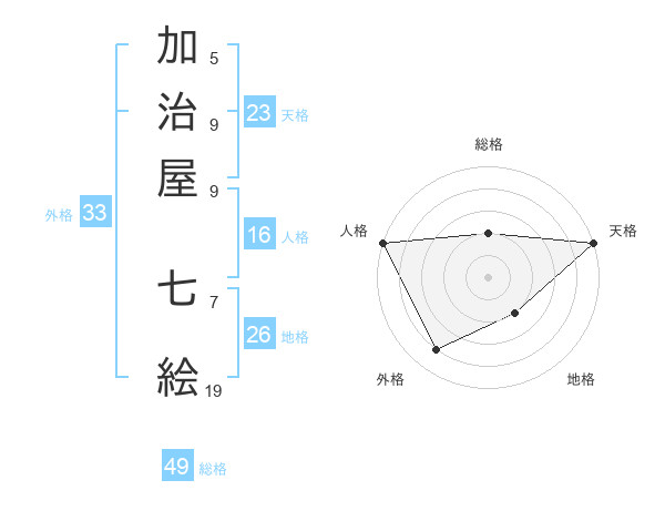 加治屋 七絵さんを姓名の画数から五運を鑑定
