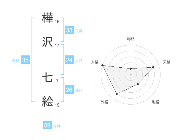 樺沢 七絵さんを姓名の画数から五運を鑑定