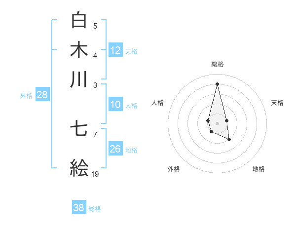 白木川 七絵さんの総格は38画の4点!