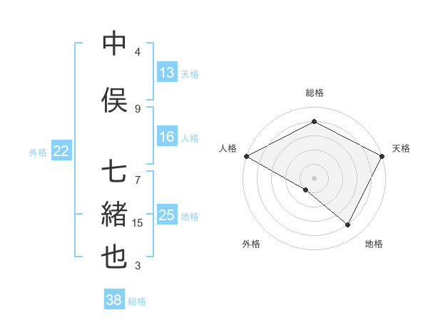 中俣 七緒也さんを姓名の画数から五運を鑑定