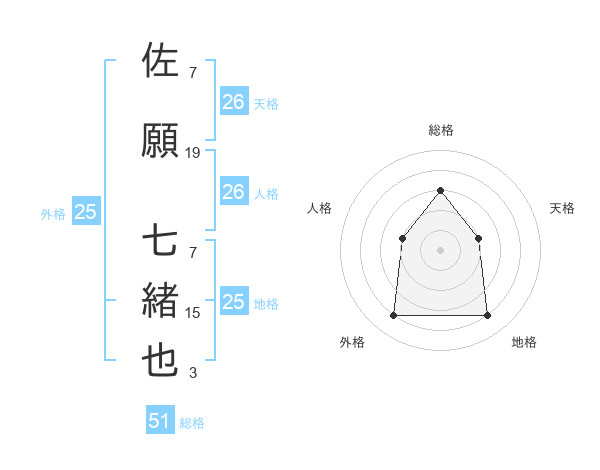 佐願 七緒也さんを姓名の画数から五運を鑑定