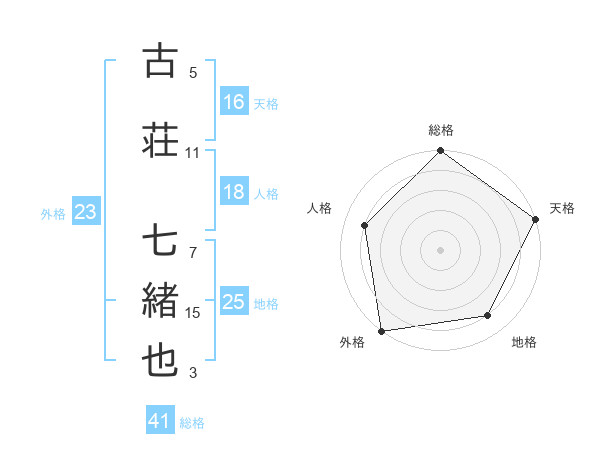 古荘 七緒也さんを姓名の画数から五運を鑑定