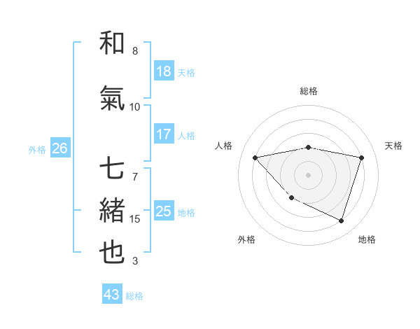 和氣 七緒也さんを姓名の画数から五運を鑑定