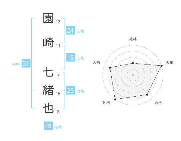 園崎 七緒也さんの総格は49画の2点!