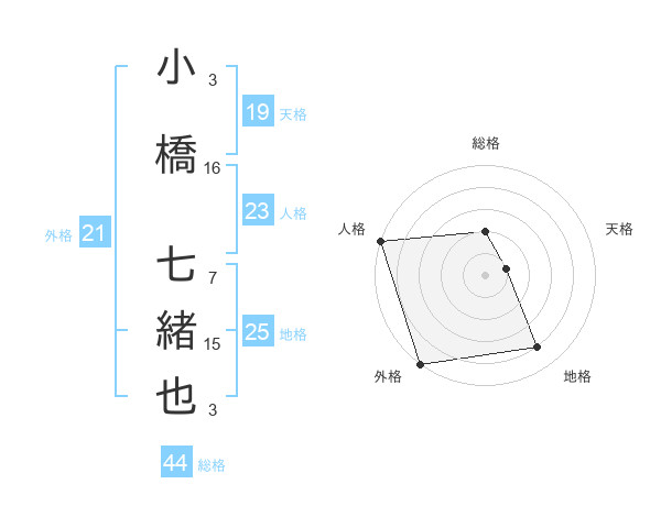 小橋 七緒也さんの外格は21画の5点!