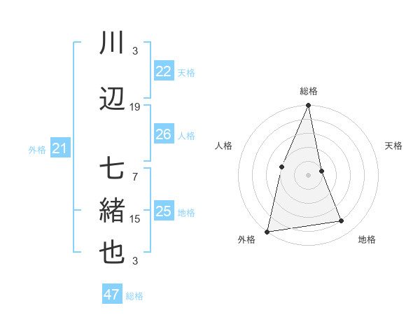 川辺 七緒也さんを姓名の画数から五運を鑑定