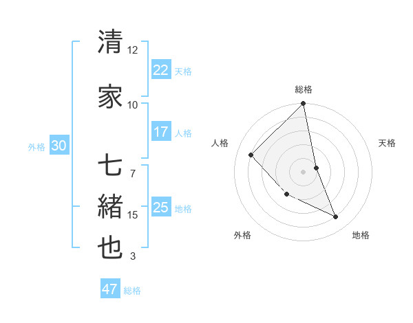清家 七緒也さんを姓名の画数から五運を鑑定