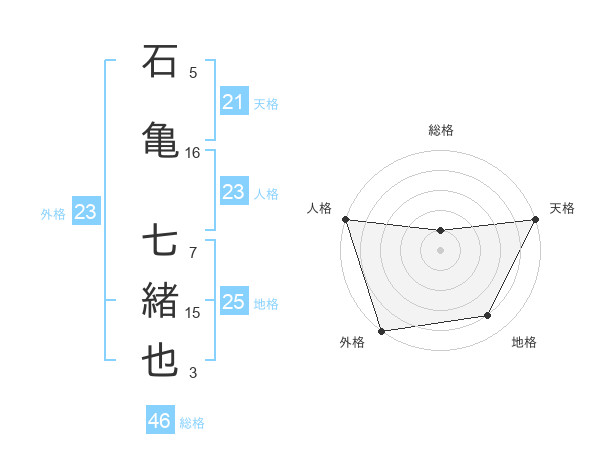 石亀 七緒也さんを姓名の画数から五運を鑑定
