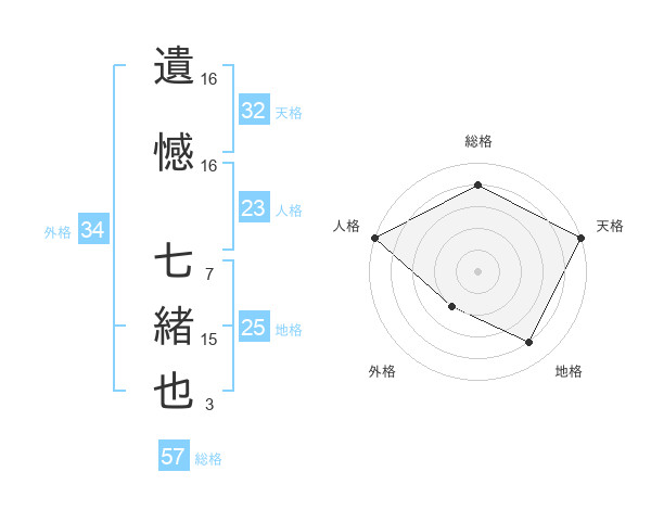 遺憾 七緒也さんを姓名の画数から五運を鑑定