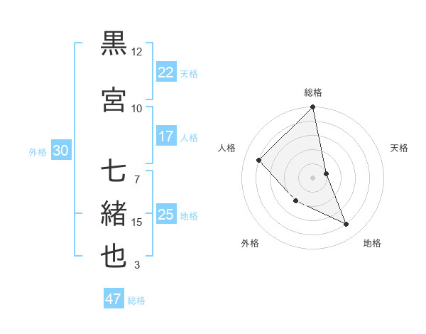 黒宮 七緒也さんを姓名の画数から五運を鑑定