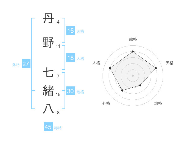 丹野 七緒八さんを姓名の画数から五運を鑑定
