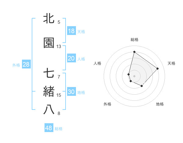 北園 七緒八さんを姓名の画数から五運を鑑定