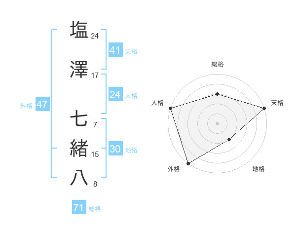 塩澤 七緒八さんを姓名の画数から五運を鑑定