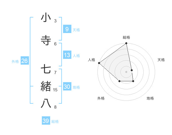 小寺 七緒八さんを姓名の画数から五運を鑑定