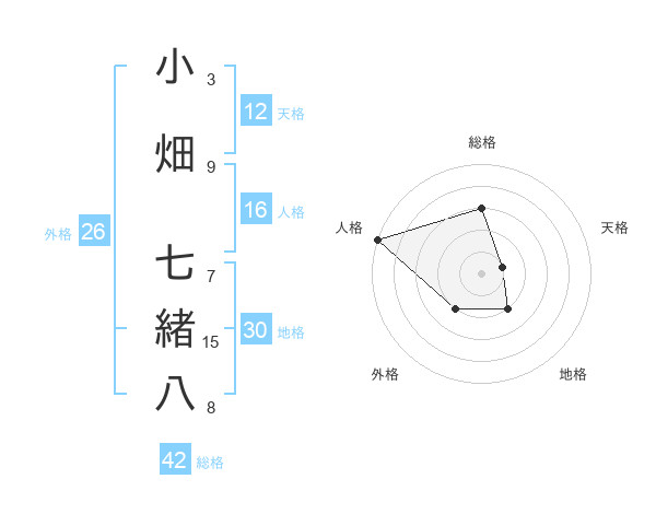 小畑 七緒八さんの総格は42画の3点!