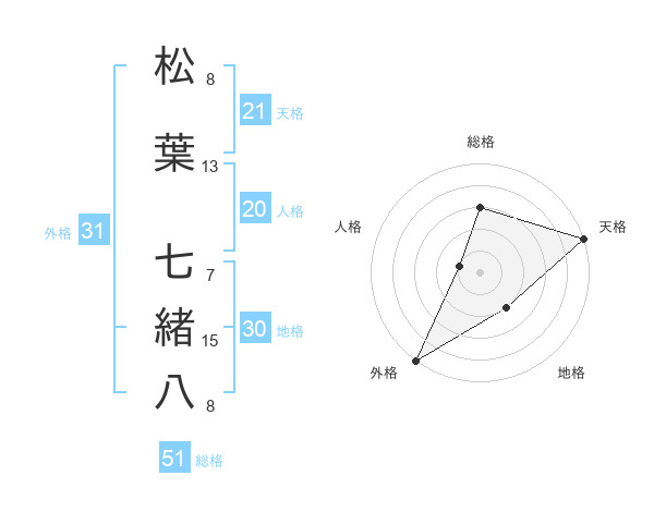 松葉 七緒八さんを姓名の画数から五運を鑑定